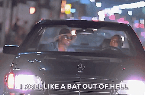 Перевод: «Он мчался, как летучая мышь из ада, в больницу.»